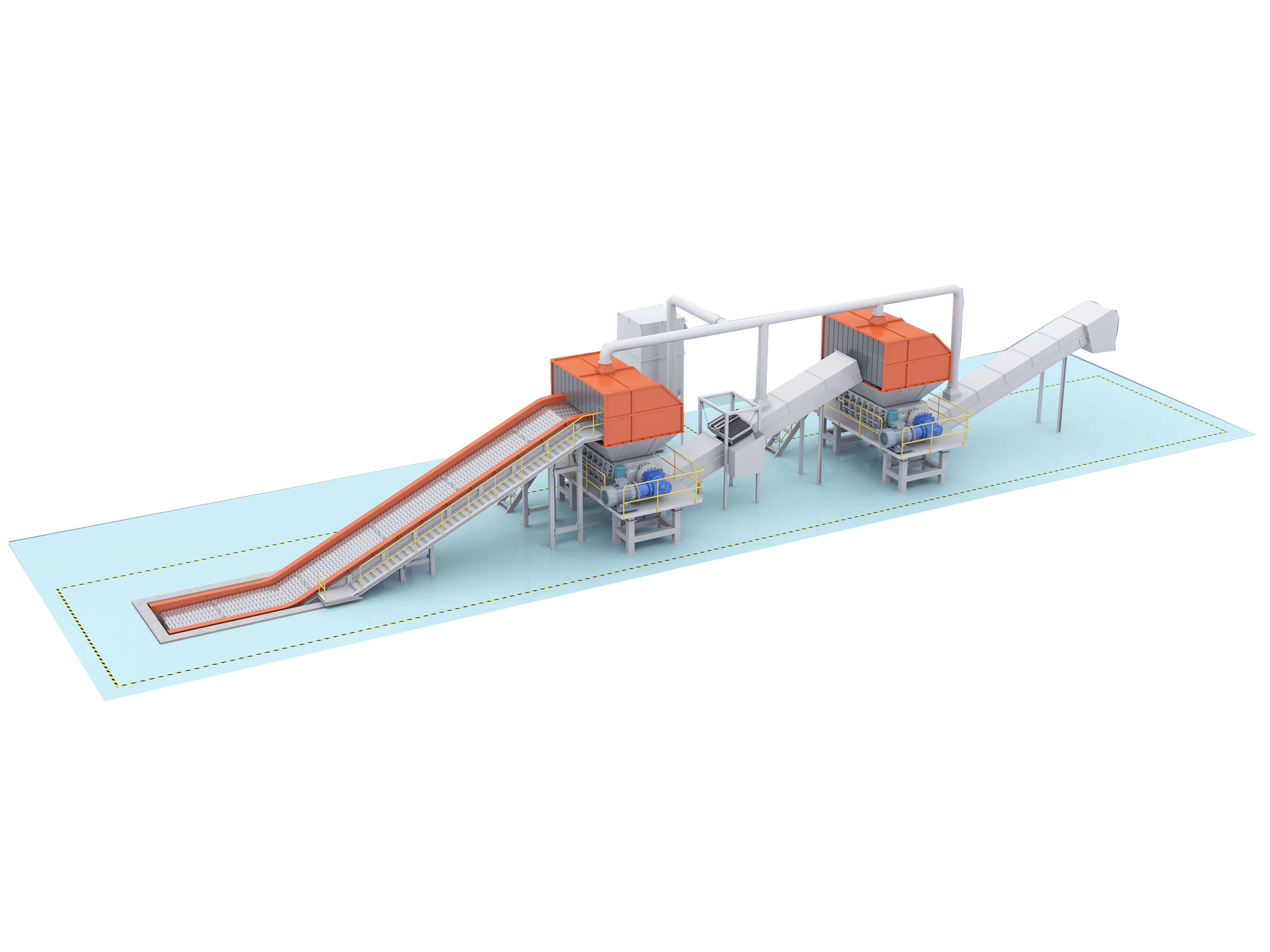 Tralciatrice a due assi Il trituratore a due assi è un trituratore industriale a bassa velocità e ad alta coppia con una potenza minima di 1,5 kW, risparmiando così energia.